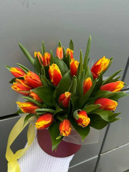 Искры радости Композиции3990 ₽4600 ₽Состав: - Тюльпан 19 шт - Рускус 5 шт - Коробка шляпная 1 шт - Оазис 1 шт - Упаковка 1 мдоставка цветов ВолгоградЗаказать