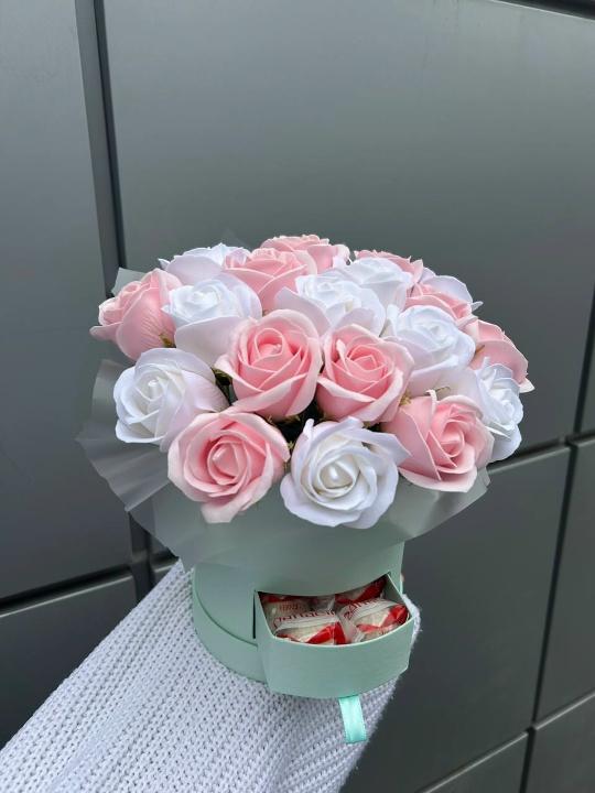 Композиция из мыльных роз Композиции1600 ₽1900 ₽Состав: - Мыльные розы 19 шт - Коробка с секретом 1 шт - Оазис - Raffaello 6 штдоставка цветов ВолгоградЗаказать