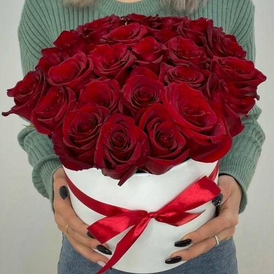 Роза Эквадор 50 см 25 шт Шляпная коробка 1 шт Оазис 1 шт