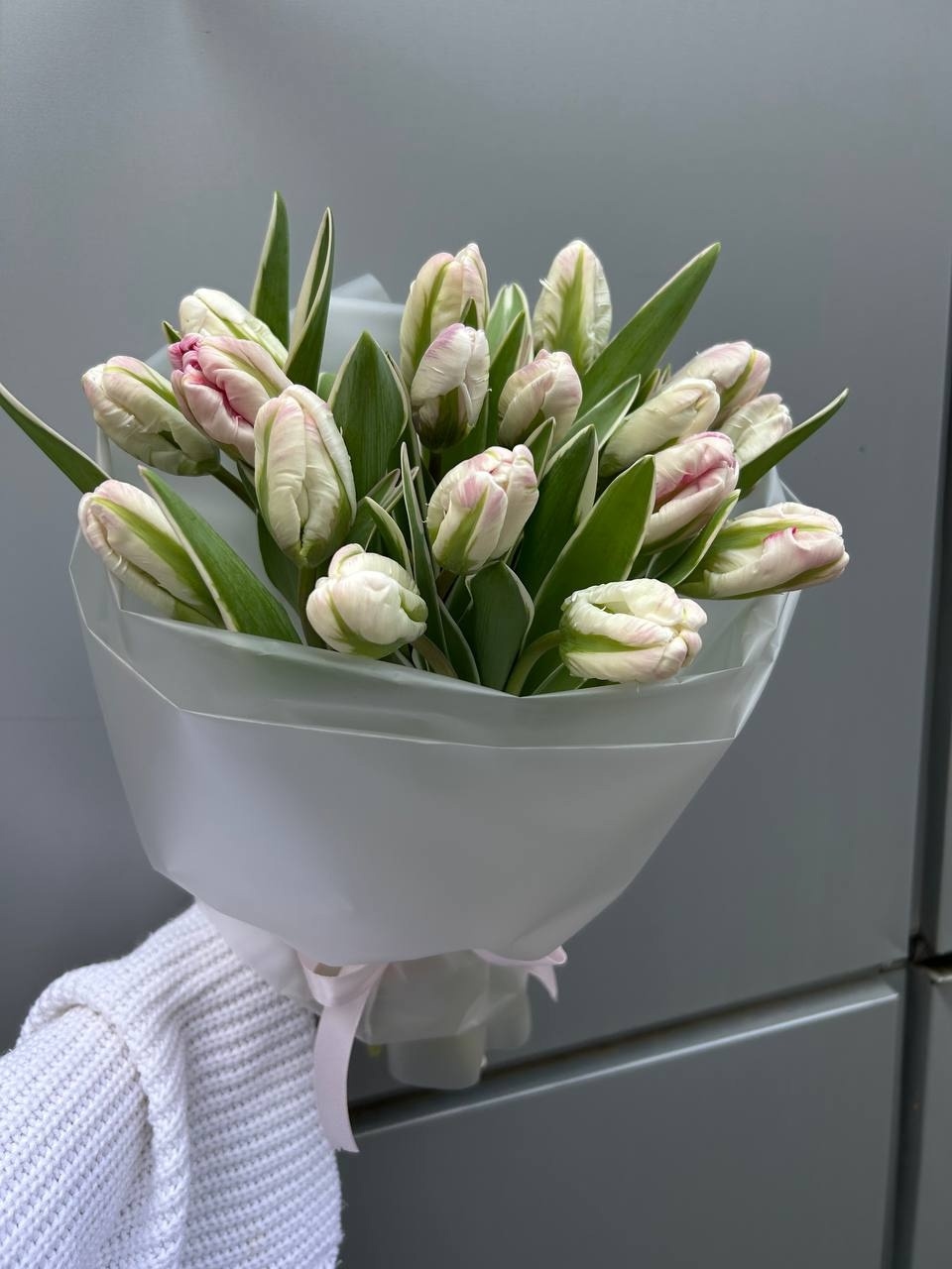 Состав: - Тюльпан 17 шт - Упаковка 2 м - Бесплатная открытка - Бесплатная доставка ( цвет букета может отличаться от представленного на изображении)